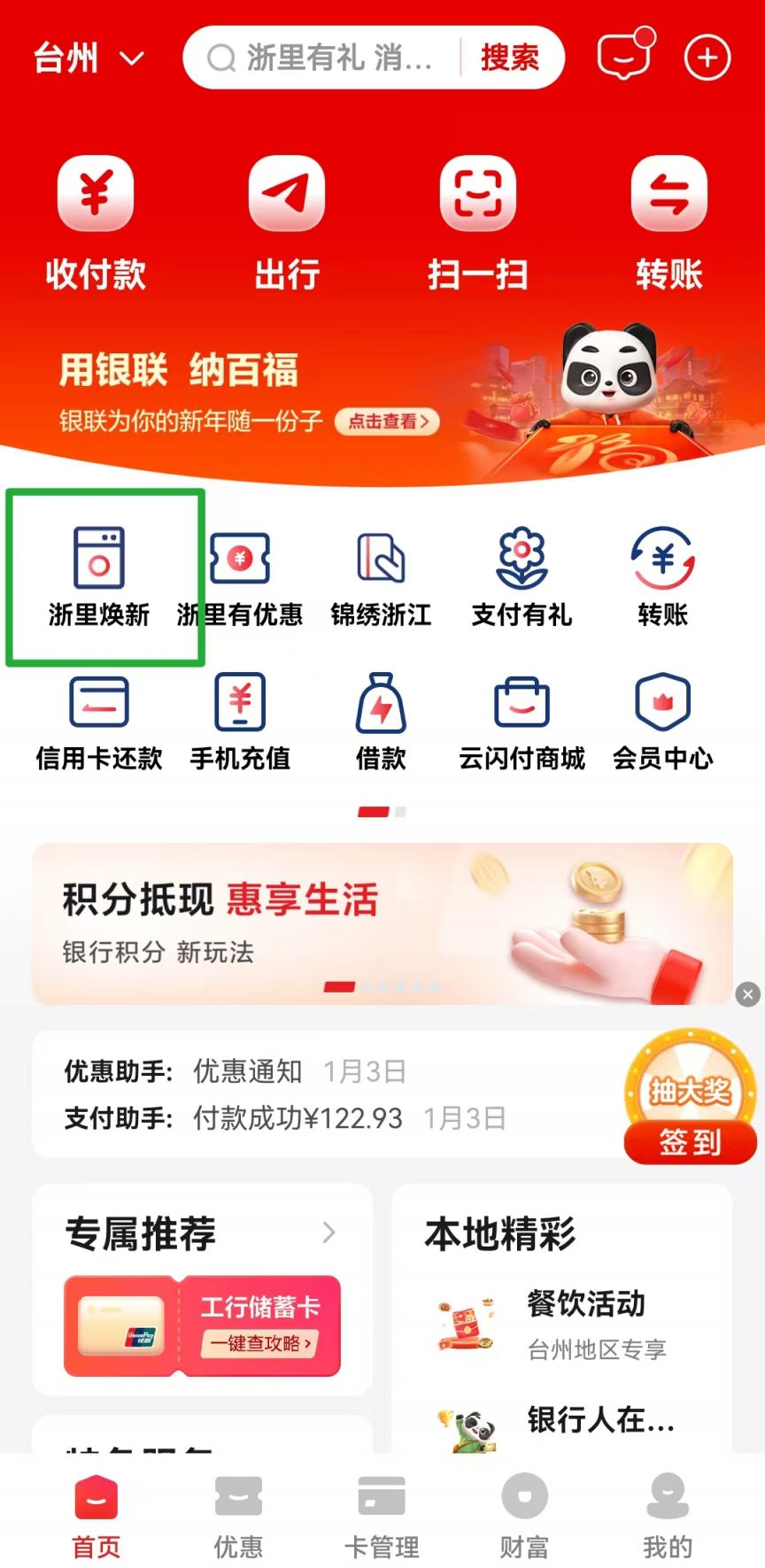 2025年台州市消费品以旧换新开始啦 补贴活动时间是什么? 家电12大类:已开始,截止到12月31日 家电扩品:已开始,截止到12月31日 一、哪些智能家电可以申请补贴? 家电12大类:电视机(含投影仪)、冰箱(含冰柜)、空调(含中央空调)、洗衣机(含干衣机)、家用灶具(含集成灶)、吸油烟机、电脑、热水器(含壁挂炉)、洗碗机、净水器、微波炉、电饭煲等12类家电产品,具体参加活动的智能家电品类,详询活动商家。 家电扩品:空气净化器、电风扇、饮水机、家用清洁设备(含吸尘器、扫地机、洗地机、清洗机)、取暖器、电熨烫器、蒸烤箱(含蒸烤炸一体机)、空气湿度调节装置器(含烘干机、除湿机、加湿器)、吹风机、咖啡机、垃圾处理器、消毒柜等12类家电产品。 二、补贴标准 按剔除商家所有折扣优惠后成交价格的一定比例给予补贴。 一级能效(水效)产品按照成交价格20%予以补贴。 二级能效(水效)产品按照成交价格的15%予以补贴。 对不设能效等级的产品按照成交价格的15%予以补贴。 每位消费者每一类产品在全国范围内只可补贴1件,每件补贴不超过2000元。额度有限,先到先得,用完即止。 三、怎么申领 家电12大类补贴参与方法: 为方便消费者申领,台州市智能家电补贴平台(银联云闪付)于2025年1月9日9:00上线。 步骤一:消费者打开云闪付APP,搜索“浙里焕新”,点击“家电以旧换新”进入所在地区家电以旧换新补贴活动详情页面。 步骤二:选择需要申领补贴的家电品类,授权填写个人信息后,系统核验通过后发放相应的资格凭证码。 步骤三:消费者在所在地区参与活动的门店购买范围内的智能家电产品时,需现场展示核验凭证码,结算时使用云闪付APP“付款码”进行支付,享受立购立减。     2025台州以旧换新家电扩品补贴参与方法(附图解)(可以直接点击查看) 参与商家查询及报名 查询适用门店可登录云闪付APP“适用门店”中查询,商家报名可咨询当地商务主管部门,咨询电话如下(咨询时间:周一至周五,上午8:30-12:00,下午:14:00-17:00)。  》》2025台州以旧换新(国补)全攻略:点击查看 举报