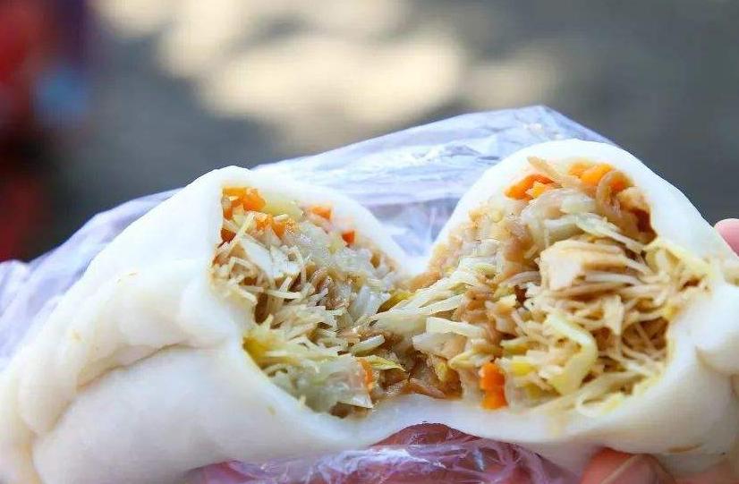 又猜称肉圆麦饼。制作方法大体与家常普通菜馅麦饼相同。唯体型略小。取精肉剁糊(俗称“肉圆糊”)做馅料。吃时用三只箸,左手拿一只箸按住盘内麦饼,右手拿一双箸去夹取,蘸一下酱油、醋,即可入口。还有更讲究的,称“鸡子灌”。即在猪肉麦饼烙熟时在麦饼边沿取一小孔,倒入鸡蛋计,使之均匀地遍布整个麦饼内,再在锅里烙一遍,然后食用。
