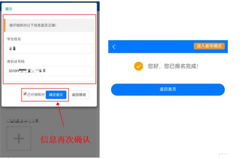 当平台弹出报名成功页面,家长阅读报名成功提示后,新生的网上信息修改即为成功。