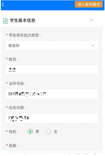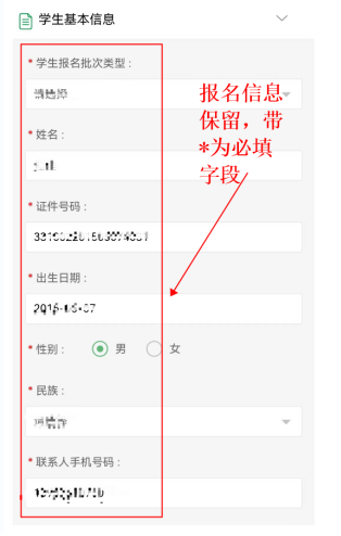 信息登记页面中保留报名的字段,家长只需将报名批次所需要提供的信息填写完毕即可。请根据字段名称及提示在文本框中填写真实、有效的信息。其中,字段名称前带红星的为必填字段。