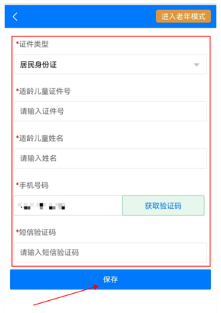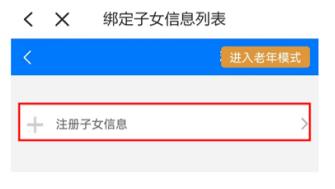 绑定子女信息页面,点击“注册子女信息”,根据提示将子女的信息填写完整后点击保存。