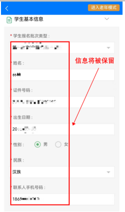 点击子女信息进入修改页面,首次报名填写的信息会在页面中保留并显示。家长只需修改需要修改的信息即可。