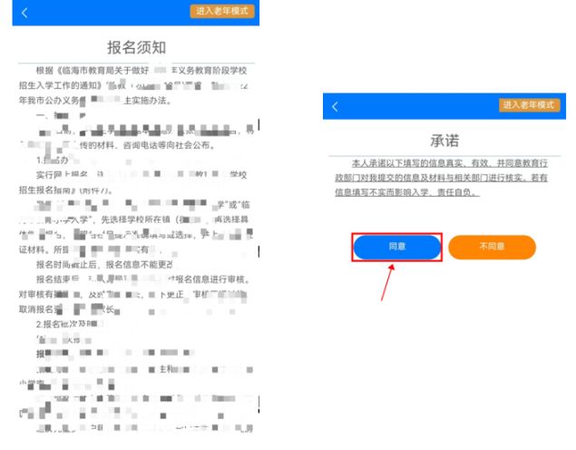 请家长仔细阅读入学报名须知并进行同意填报前的承诺。