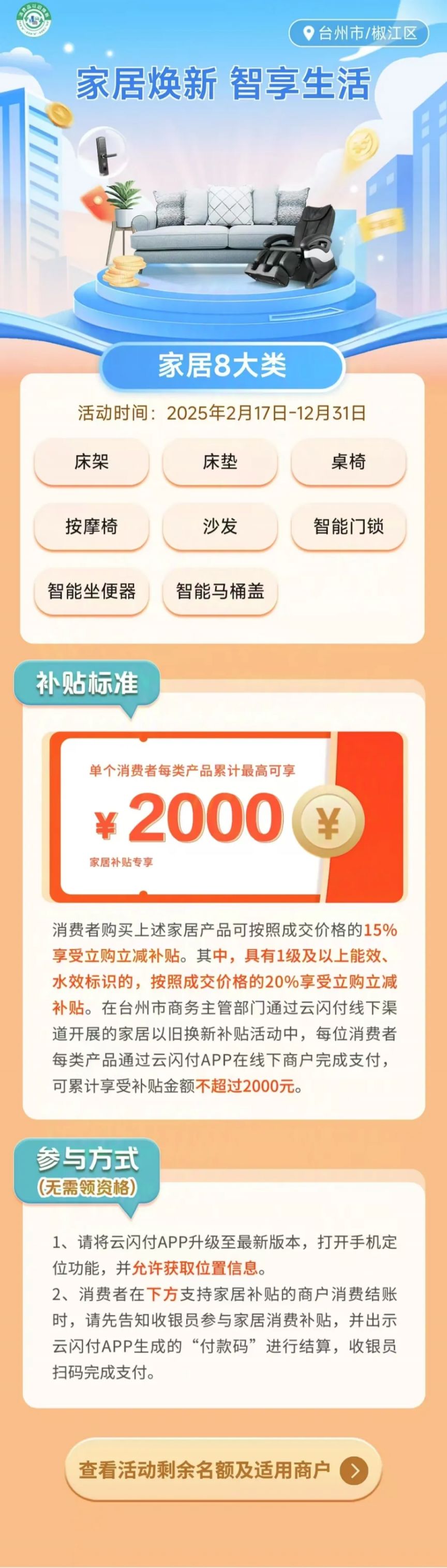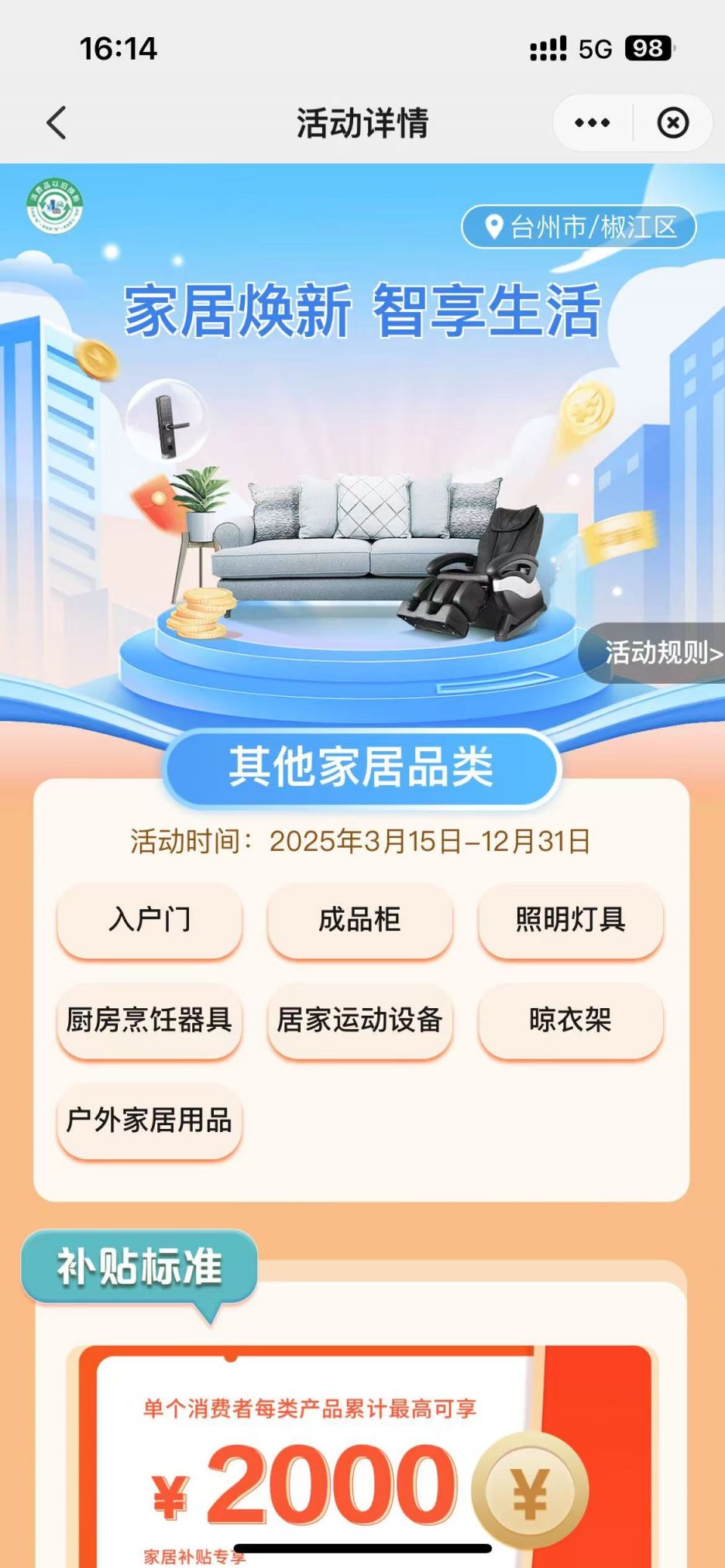2025台州家居换新补贴活动即将开启,以下是可能的活动时间和相关信息: